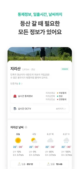 또한, 지역별로 등산하기 좋은 산을 추천해주어 어떤 산으로 갈지 고민할 필요가 없습니다. 경기, 강원, 제주 등 다양한 지역에서 추천하는 산을 쉽게 찾을 수 있습니다.