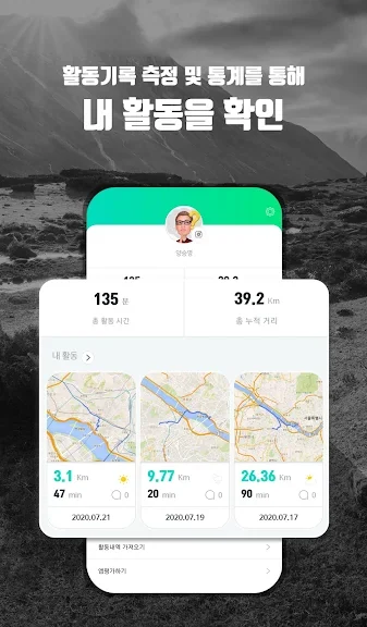 첫째, '홈'에서는 나의 운동 요약과 다양한 산과 코스 정보를 확인할 수 있습니다. 둘째, 운동 성과에 따라 배지와 경험치를 얻을 수 있어 운동을 재미있게 이어갈 수 있습니다. 또한, '운동 내비게이션' 기능을 통해 등산로, 보행자 도로, 자전거 도로 등을 안내받을 수 있어 길 찾기가 매우 수월합니다.