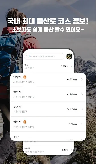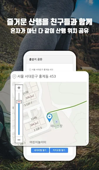 산고 메이트는 등산을 더욱 즐겁고 스마트하게 만들어주는 앱입니다. 이 앱은 국내 최대의 등산로 정보를 제공하며, 초보자도 쉽게 산행을 할 수 있도록 돕습니다. 출발점을 클릭하면 친구와 함께 위치를 공유할 수 있어 혼자가 아닌 다 같이 산행하는 기분을 느낄 수 있습니다.